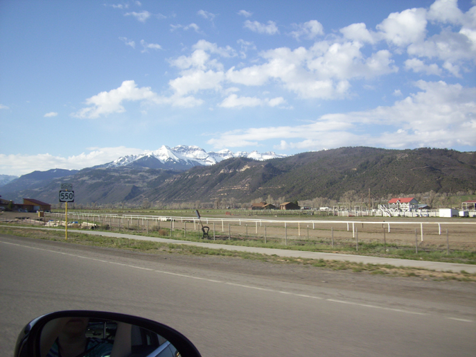 | Rocky Mountains coming into view along Highway 550 in Colorado. |