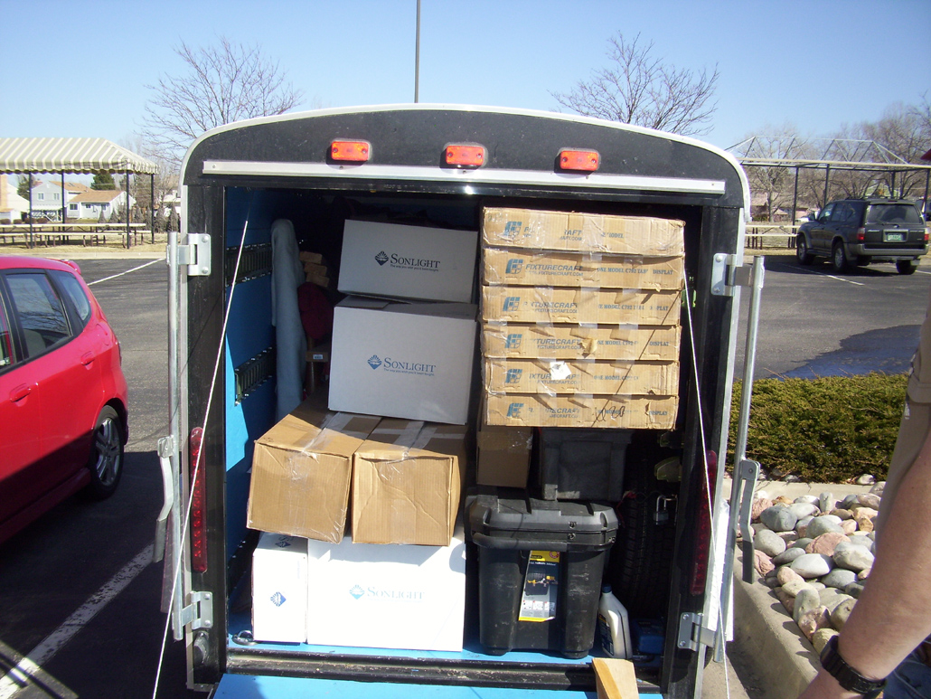 Barb, our wonderful convention coordinator, had my supplies ready and waiting… and Lyle, driver-and-packer-extraordinaire, quickly and efficiently got everything loaded into our little trailer.