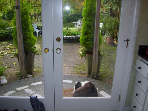 Part of the hospitality committee includes the friendly old dog, Camille, who watched us through the French doors for awhile before curling up for a nap on the mat…