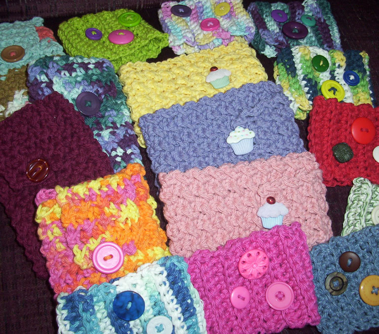 Now that the pre-Christmas rush has dropped off, I’ve been working up some new colors for spring in my mug cozy line for my Etsy shop… including a series with adorable cupcake buttons! I’ll be listing them shortly after New Year’s.